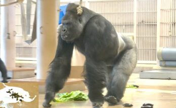 In this video, we witness an adorable moment where a young gorilla beats his mother’s chest, only to immediately realize his action and appear regretful. This behavior not only shows the innocence of the young gorilla but also reflects the deep bond and maternal connection between them.