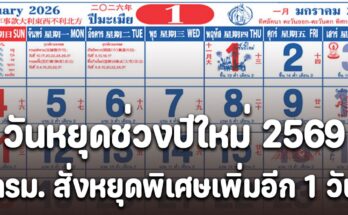 ประกาศแล้ว!! วันหยุดช่วงปีใหม่ 2569 ครม. สั่งหยุดพิเศษเพิ่มอีก 1 วัน Read More