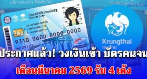 ประกาศแล้ว! วงเงินเข้า บัตรคนจน เดือนมีนาคม 2569 รับ 4 เด้ง รอบใหม่เตรียมทบทวนสิทธิลงทะเบียน