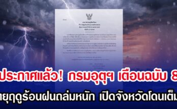 ประกาศแล้ว! กรมอุตุฯ เตือนฉบับ 8 พายุฤดูร้อนฝนถล่มหนัก เปิดจังหวัดโดนเต็มๆ Read More